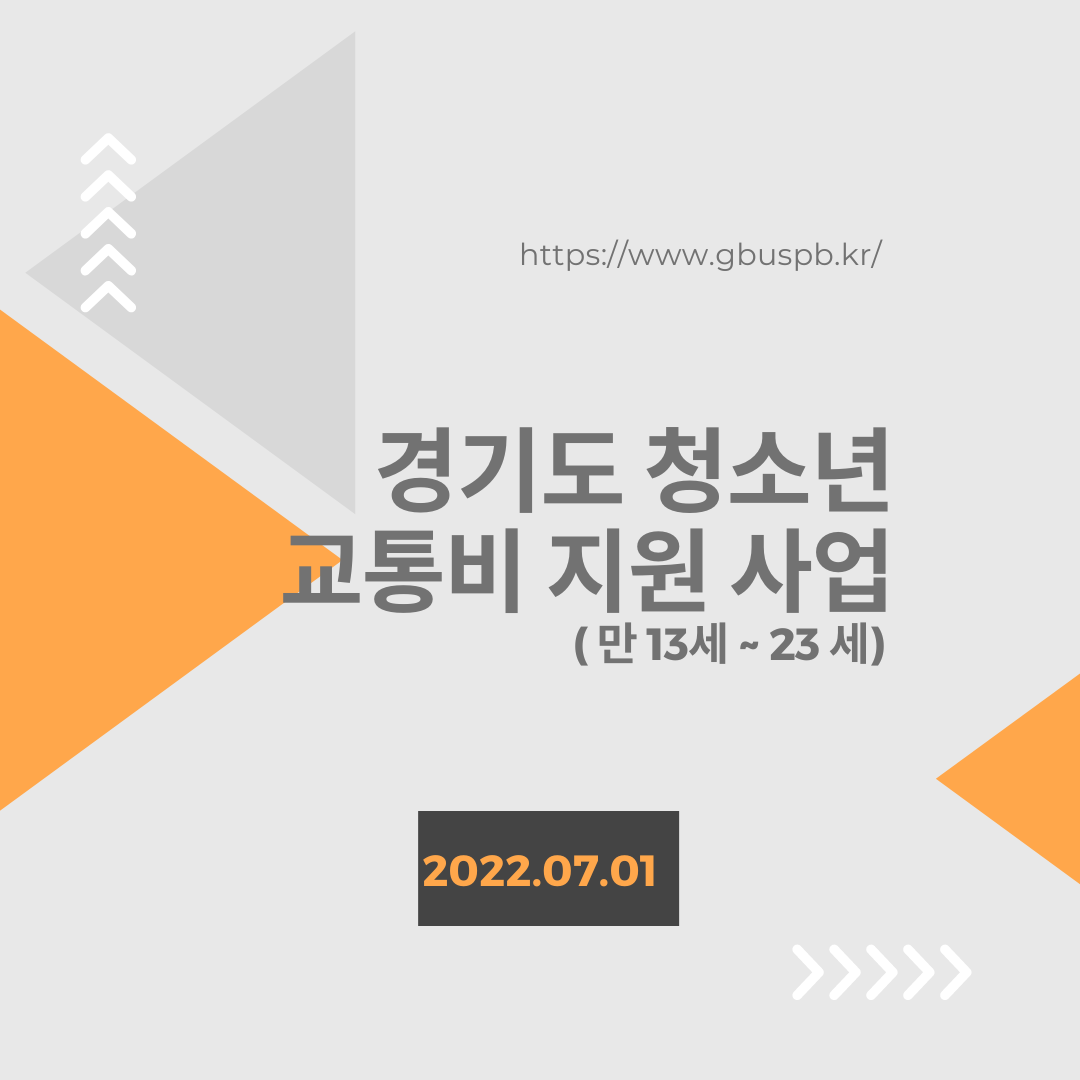 경기버스 요금 인상으로 대중교통을 자주 사용하는 청소년 & 청년들의 교통비 부담을 줄이기 위해 경기도가 교통비를 지원합니다. 2022년 상반기 신청은 올 7월 1일부터 신청 가능하니, 경기도 거주하는 청년 & 청소년들 (13세~23세) 의 많은 관심 부탁드립니다.