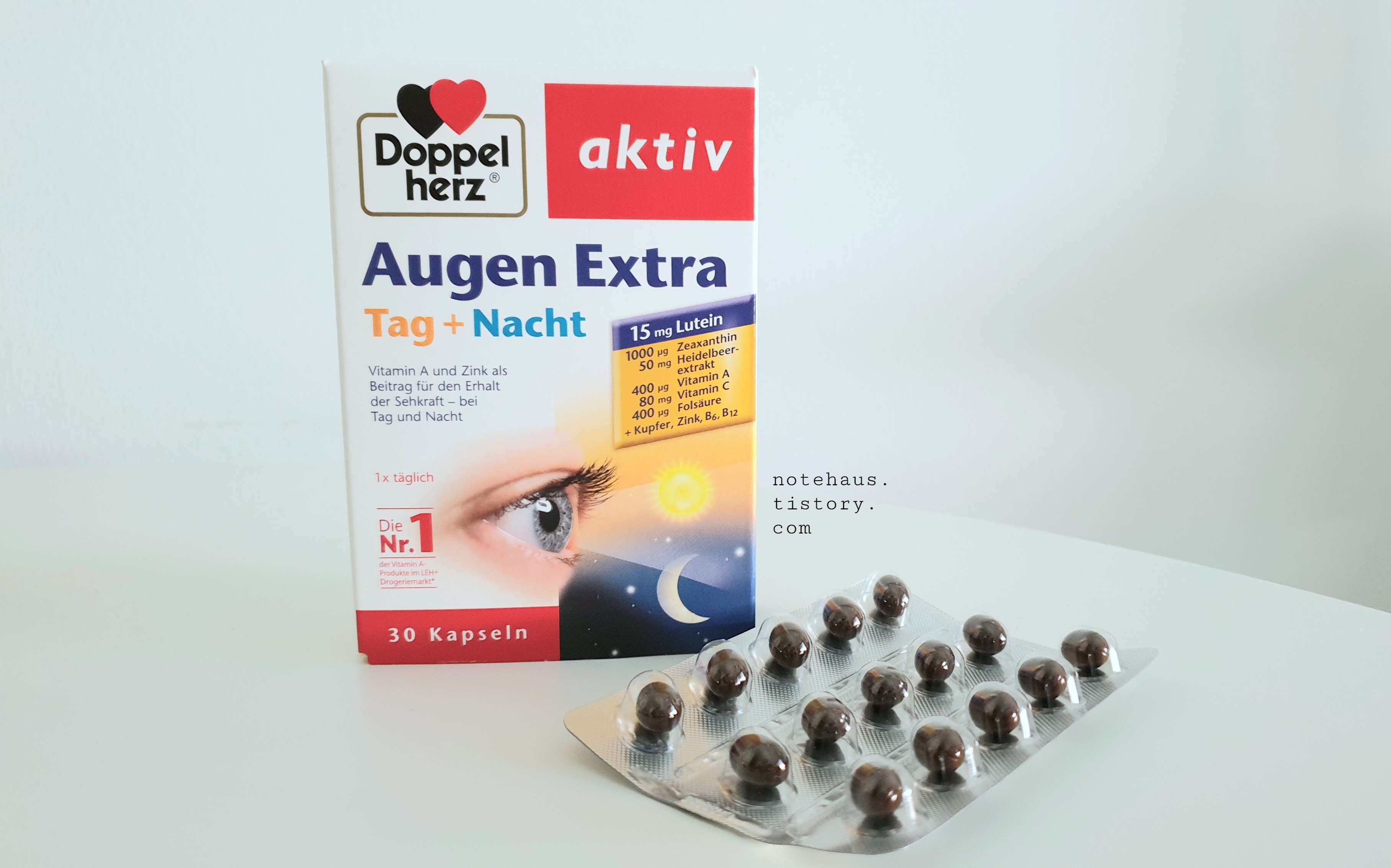 2년 전쯤 아침부터 눈에 뻑뻑한 느낌과 시린 느낌이 동시에 들기 시작했다. 안구 건조라는 생각이 들었지만 인공눈물에 대한 거부감이 있던 터라 눈 영양제를 찾아보았고 그렇게 찾게 된 것이 도펠헤르츠 회사의 아우겐 엑스트라 ( 낮 + 밤 전용 ) 제품이다.