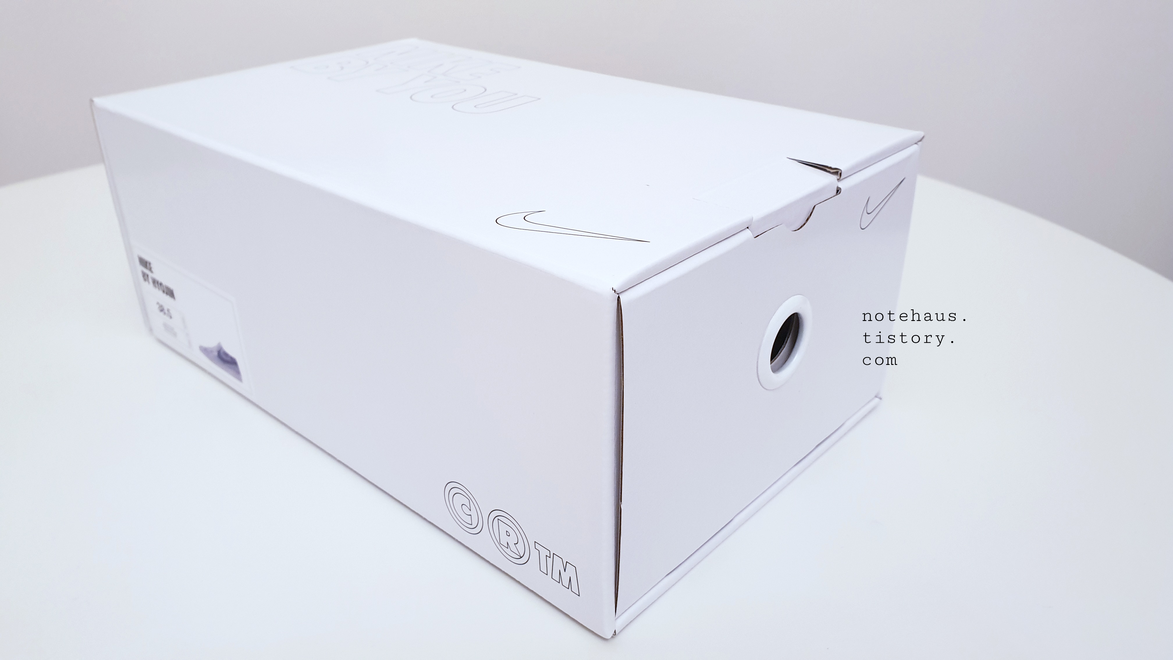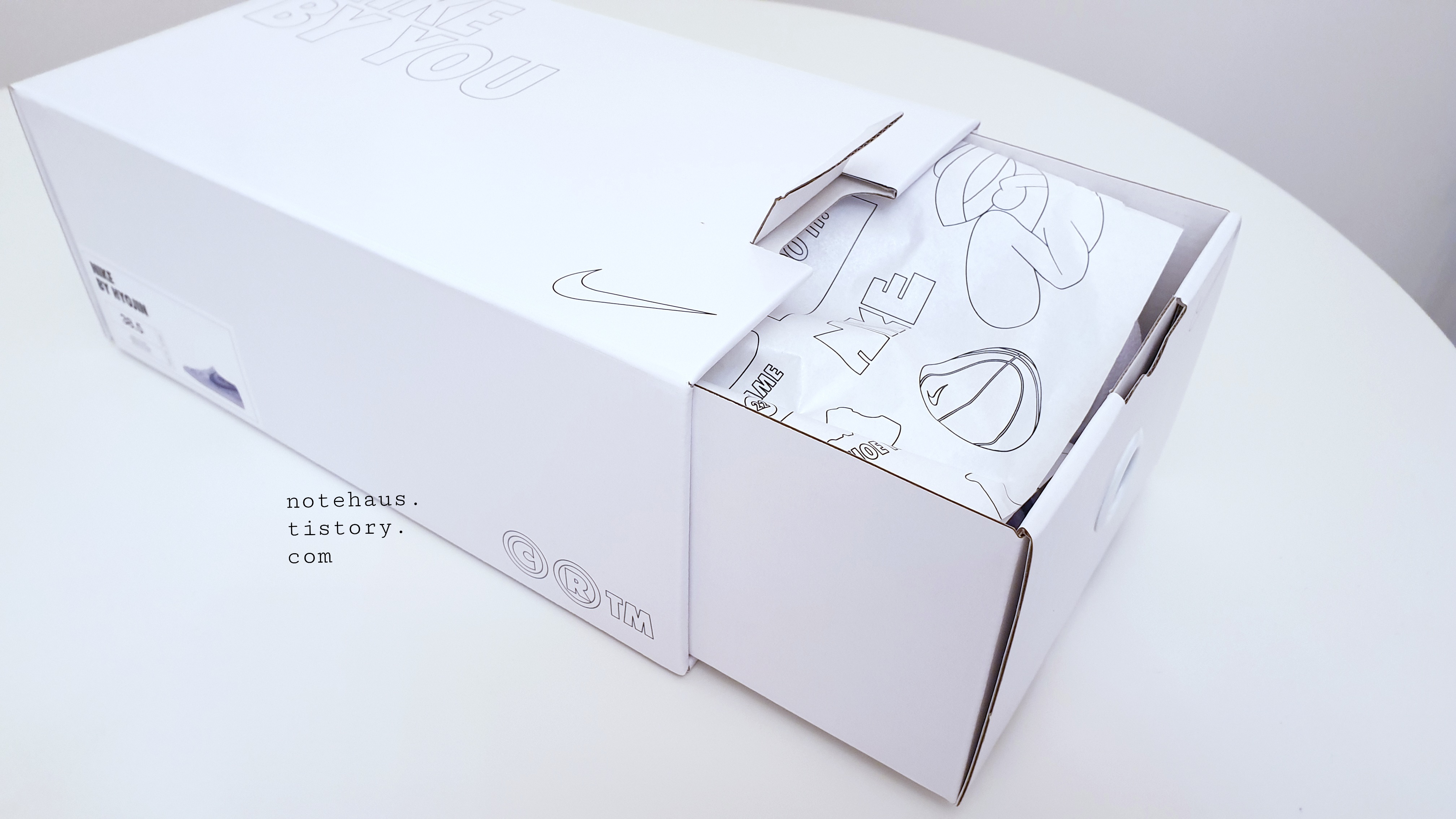주문제작한 나이키 스니커즈는 박스부터 남달랐다. 심지어 뚜껑을 여는게 아니고 옆으로 여는 큭