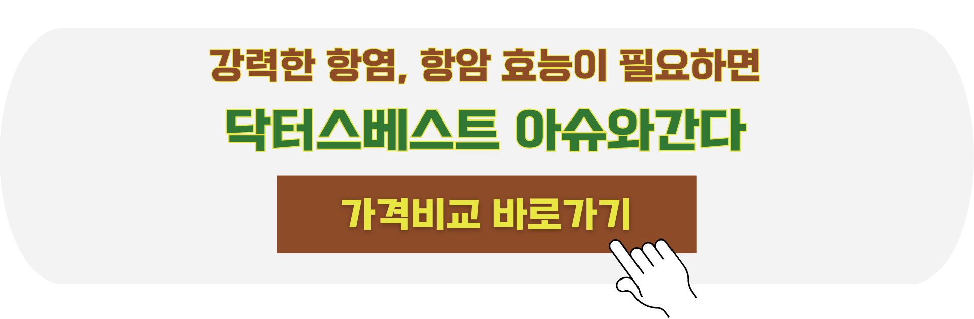 - 강력한 항염, 항암 효능을 찾고 있다면 닥터스베스트 아슈와간다 제품이 좋습니다. 두 알에 25mg의 위타놀라이드(Withanolides)가 들어있으며 특히, 가성비가 좋습니다.