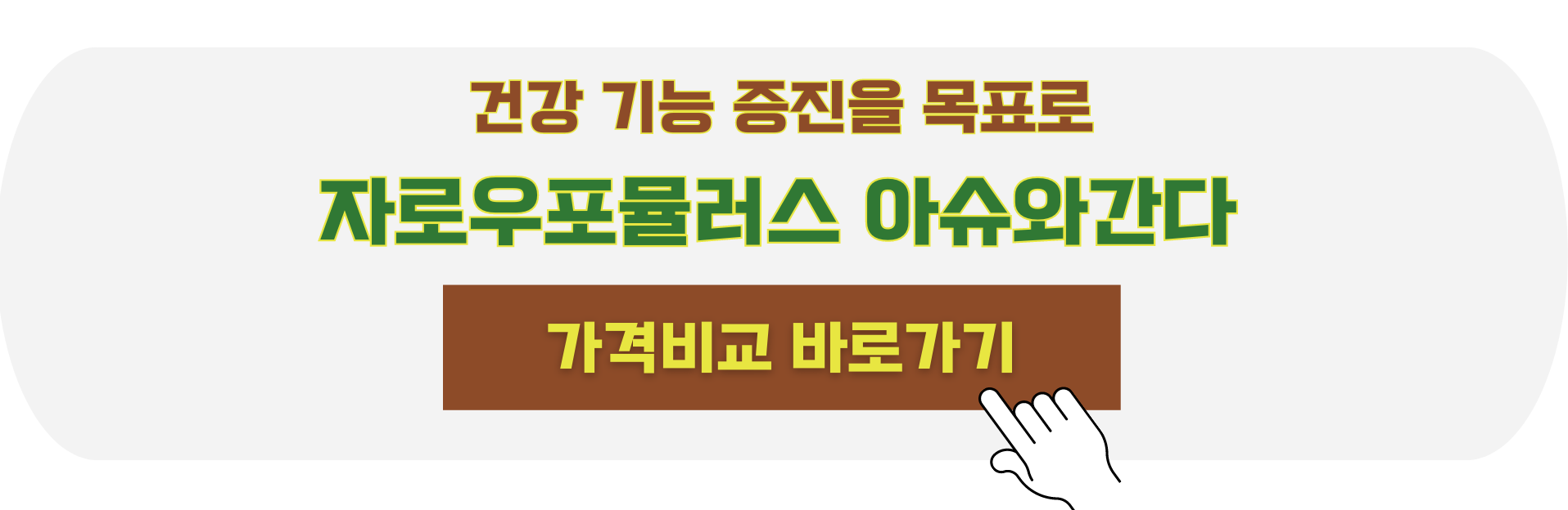 - 건강기능 증진을 목표로 하는 경우 자로우포뮬러스 아슈와간다 제품이 좋으며 한 알에 15mg의 위타놀라이드(Withanolides)가 들어있습니다.
