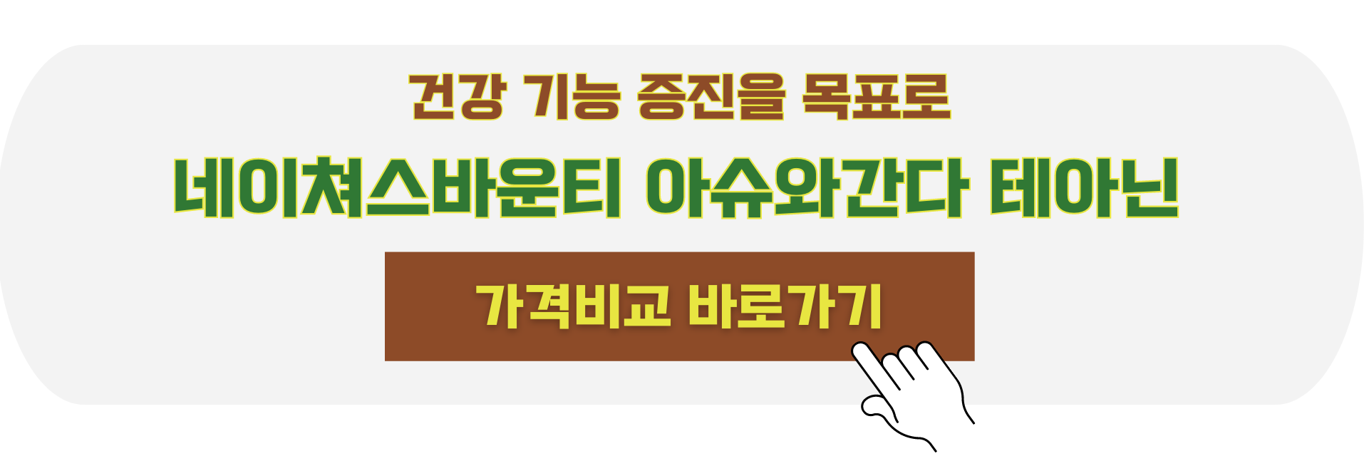 - 앞서 소개한 제품과 같이 건강 기능 증진이 목적이라면 네이쳐스바운티 아슈와간다 테아닌 제품도 좋습니다. 한 알에 15mg의 위타놀라이드(Withanolides)와 녹차 유래 테아닌도 함께 함유되어 있습니다.