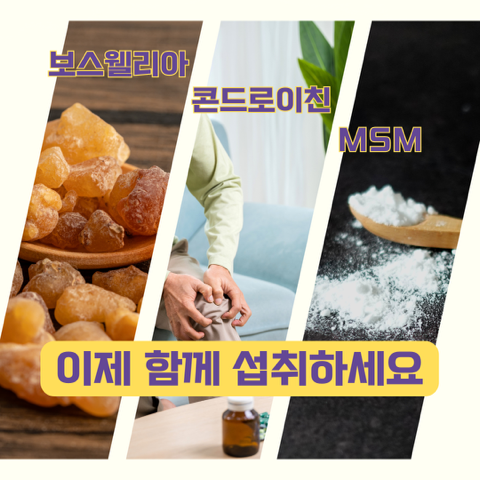 관절염으로 고생하는 분들에게 좋은 콘드로이친, MSM 그리고 보스웰리아 각각의 효능과 이 세 가지 성분을 함께 섭취하면 좋은 이유에 대해 소개합니다.