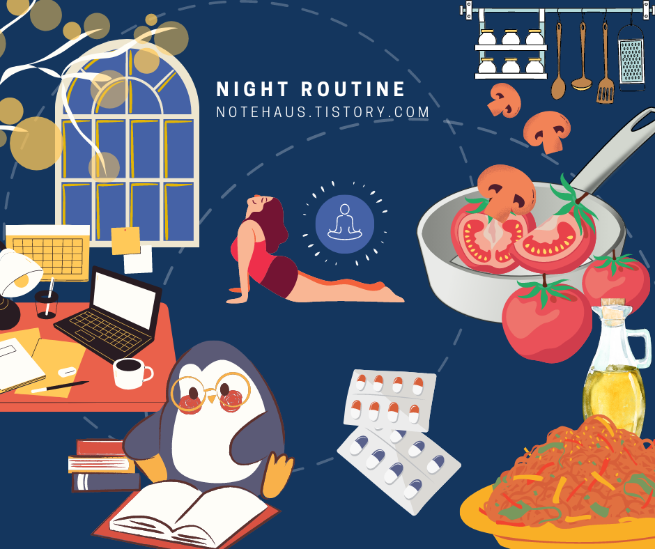 잠들기 전에는 유산균을 먹거나 오메가 3를 섭취한다. 그리고나서 얼굴에는 알로에 젤, 잇몸에는 잇몸통증완화 치약을 또다시 바르고 스쿼트를 한다. 세안과 양치를 마친 후에는 요가를 한다. 목 통증 완화에 좋은 요가를 한다. 나이가 들수록 몸이 정말 예전 같지 않다. 무엇보다 현재 일 관련에서 스트레스가 높은 상태라서 무조건 요가를 하고 잔다. 안 하면 아프다.