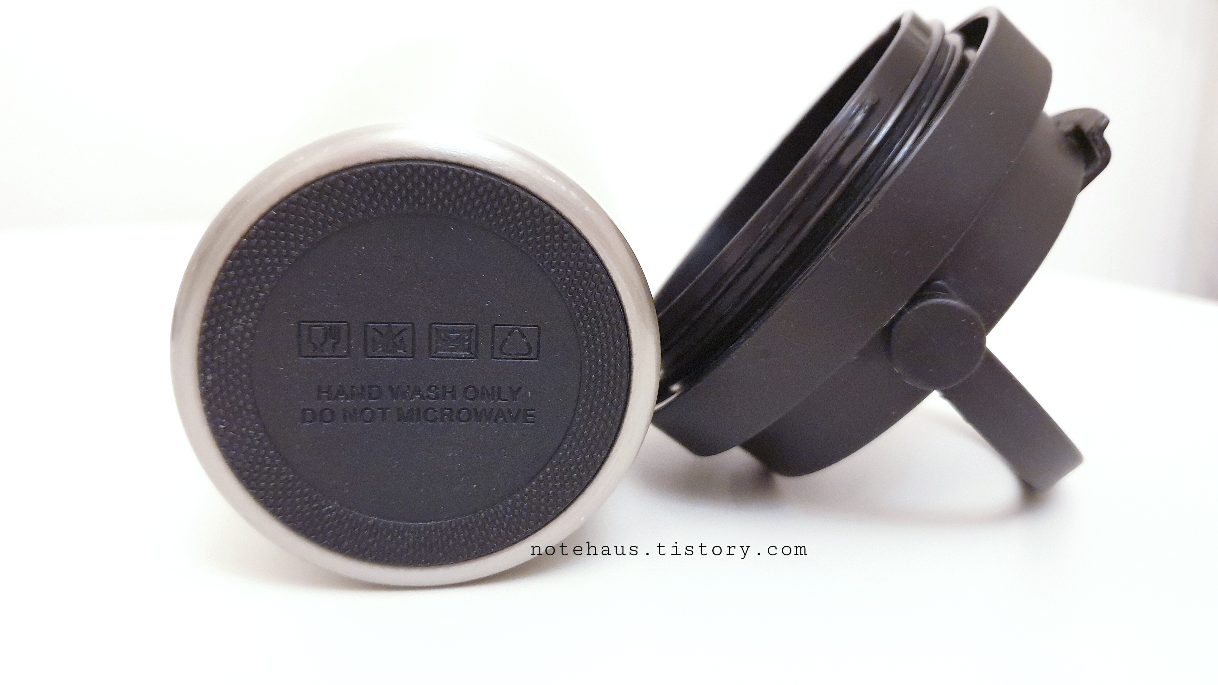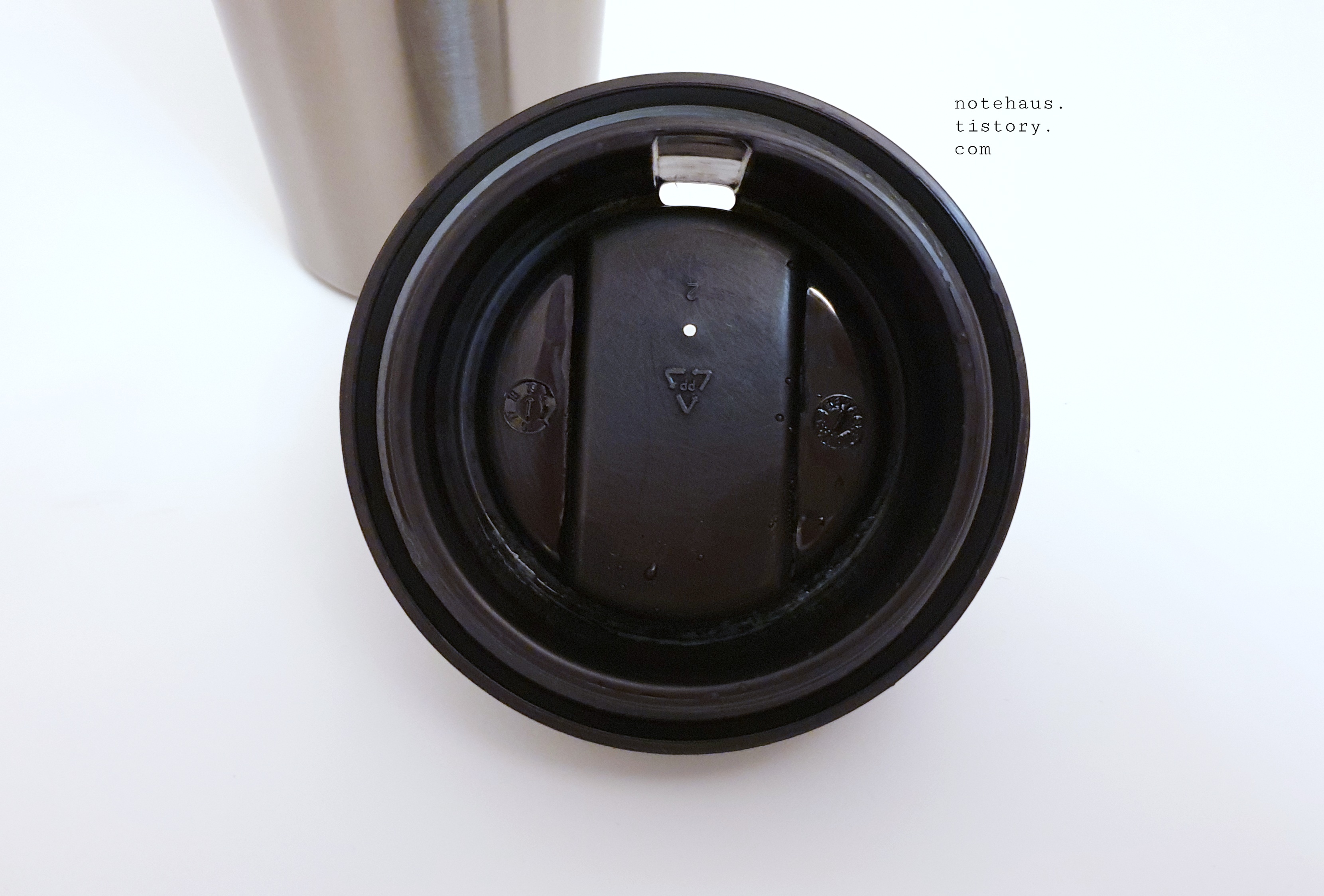 2. 텀블러 바닥에 미끄럼 방지 고무 패드가 있어서 안전하지만 테이블 바닥에 약간 검은 얼룩이 생긴다. (알코올이나 물로 지워지는 얼룩이다.)