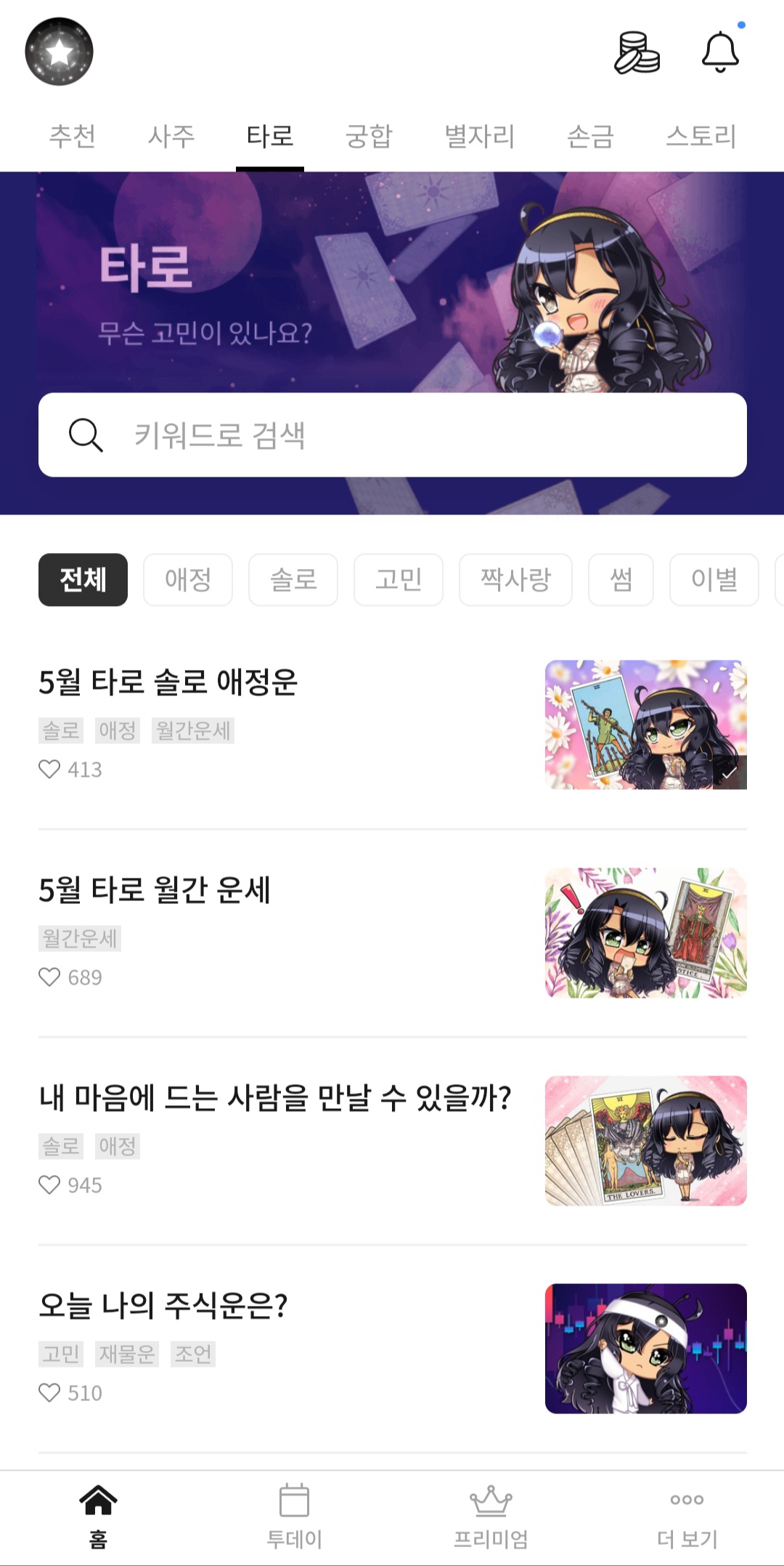 6. 타로 컨텐츠도 사주만큼 다양하고 알차게 제공한다.